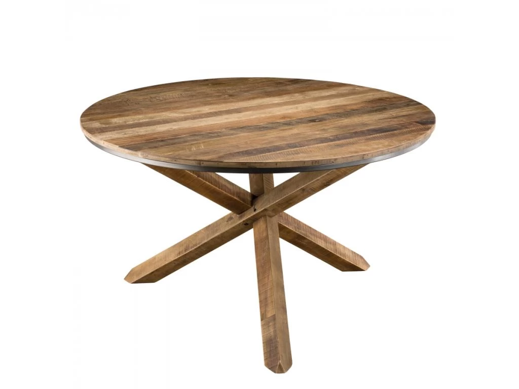 Table à manger ronde marron 130x130cm pieds croisés Teck recyclé Acacia Mahogany recyclé. Dimensions : 130 x 130 x 77,5 cm. Article en Teck recyclé et Acacia, Mahogany recyclé. Cet article est composé de bois recyclé ! Le bois recyclé est un bois récupéré de vieilles charpentes, de coques de bateaux ou tout bois de récupération ayant déjà eu une longue vie. C’est ce qui lui donne cet aspect vieilli et authentique avec ses imperfections qui font tout son charme. Acquérir du bois recyclé est une initiative écoresponsable qui permet de lutter contre la déforestation.