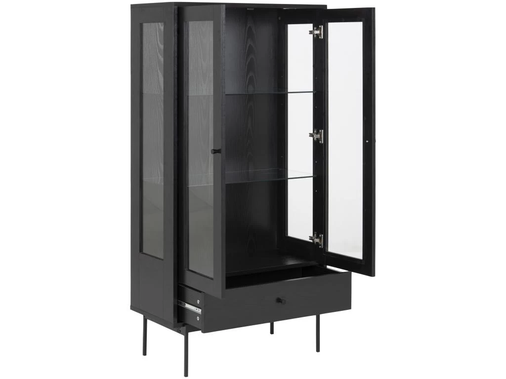 Angus Vitrine avec 2 portes vitrées et 1 tiroir, noir. Obtenez des meubles de bonne qualité, confortables, conçus dans un design élégant et moderne. Nos meubles sont vendus à des prix vraiment très attractifs et compétitifs. Créez un intérieur qui vous ressemble, en créant un style qui vous est propre grâce à de nouveaux meubles. Combinez vos meubles avec d’autres éléments et accessoires pour créer une athmosphère chic et à la mode. Soyez toujours au goût du jour en matière d’habitat, et suivez les dernières tendances telles que présentées dans les revues et les magazines. Chez nous, vous trouverez des modèles de meubles et de décoration d’intérieur absolument uniques, chics et ultra confortables. Tous nos meubles offrent un design tendance.