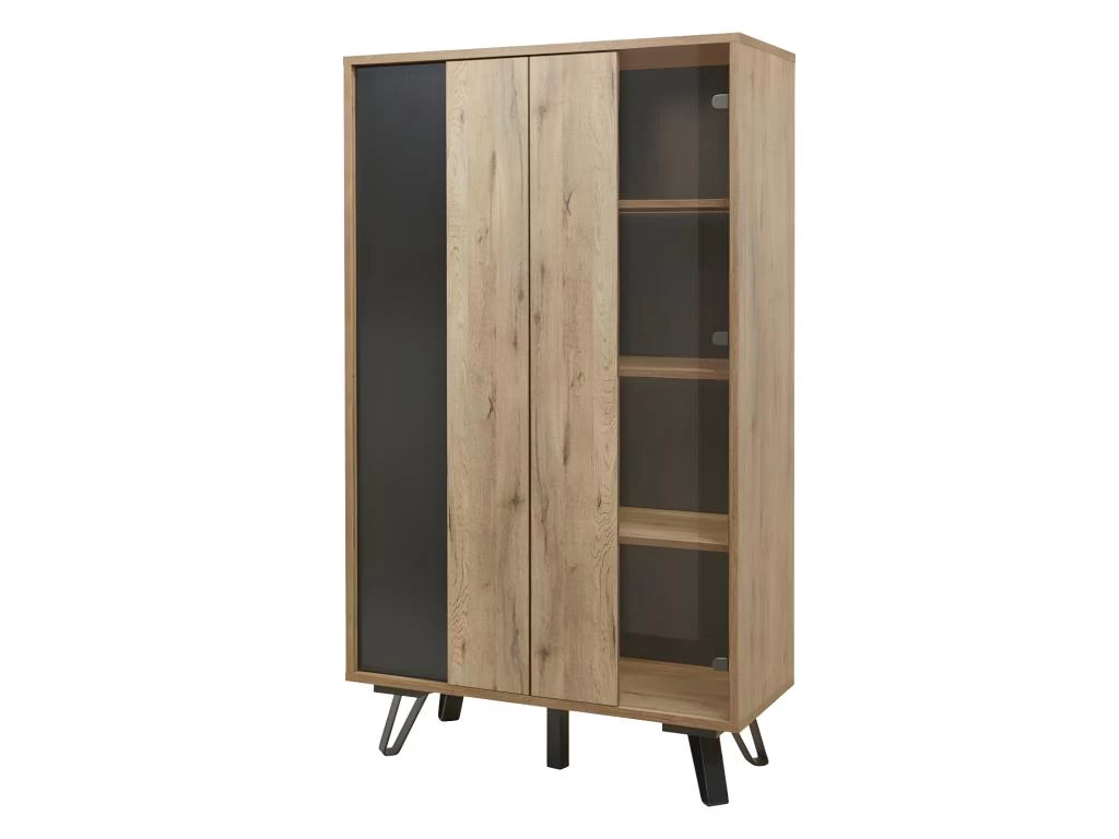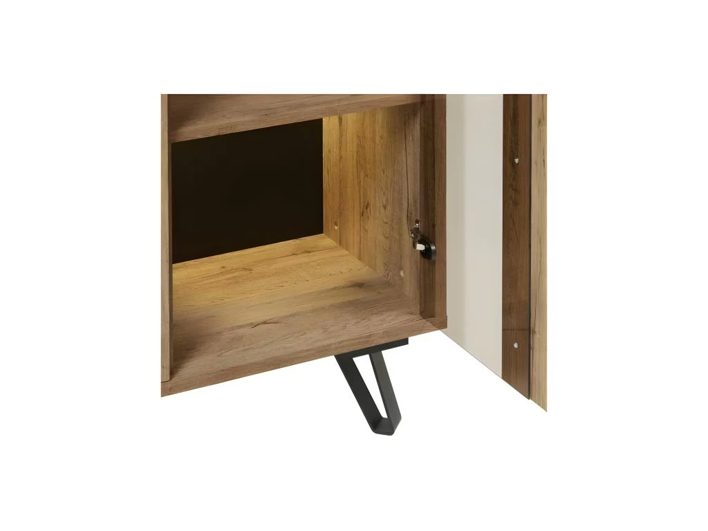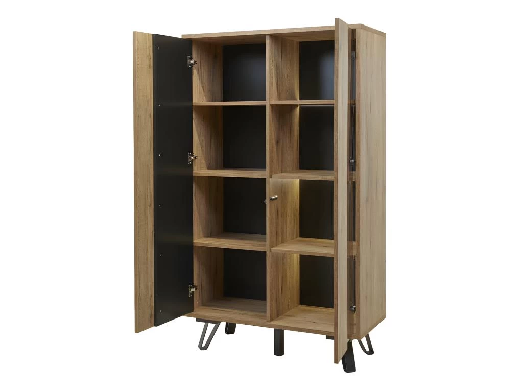 Pour une salle à manger ou un salon au goût du jour, cette armoire de salon propose le mariage d’éléments laqué noir et d’une finition Chêne Miel au rendu plus vrai que nature.