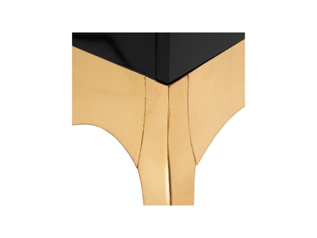 Réalisée en bois laqué noir et peint Or ce meuble de rangement deviendra le point fort de la déco de votre pièce, grâce à son encombrement optimisé il pourra prendre place dans un salon mais aussi dans une entrée ou une chambre.