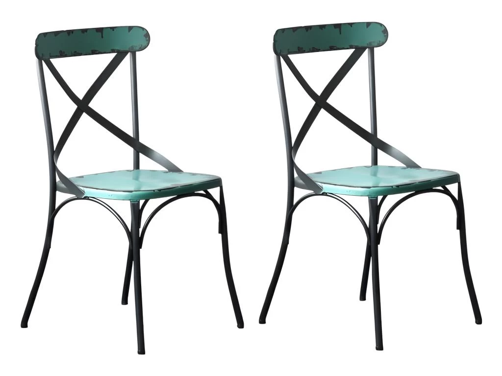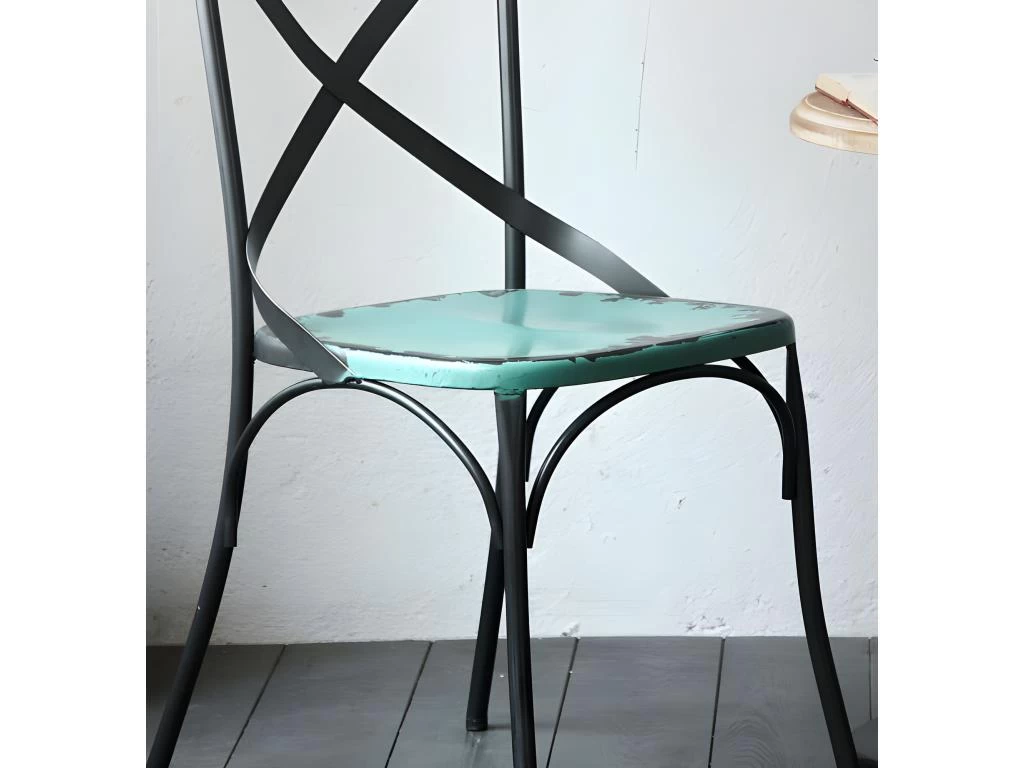 La Chaise de repas Bistro en métal bleu effet vintage est idéale pour une décoration de type industriel.