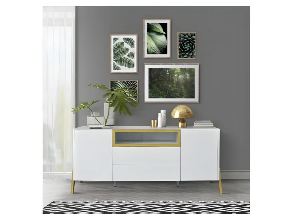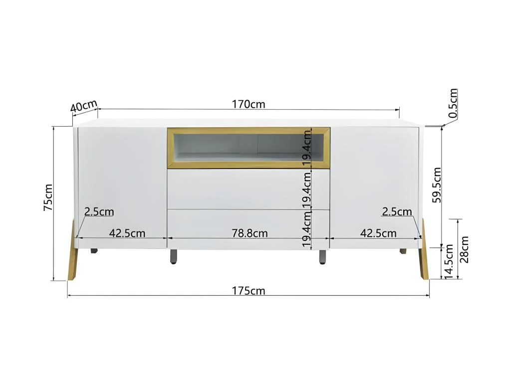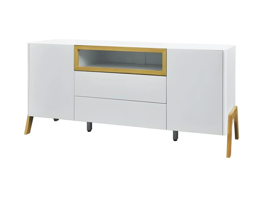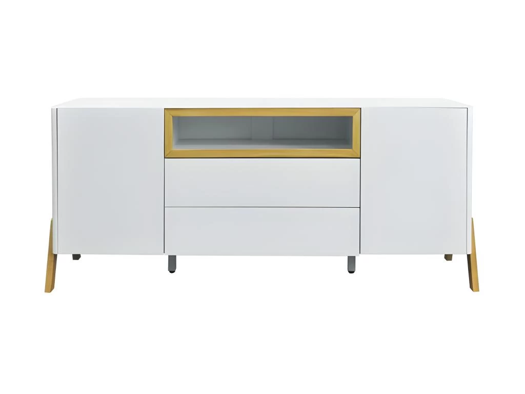 Buffet 2 portes 2 tiroirs – Niche de rangement – Bois – L 175 x P 40 x H 75 – ERZA