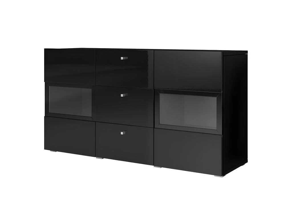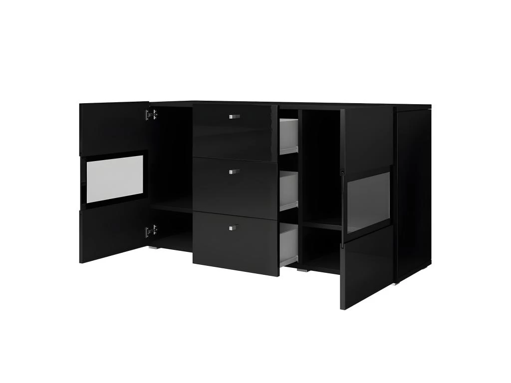 – COLORIS : Corps du meuble couleur noir. Façades portes et tiroirs couleur noir brillant.