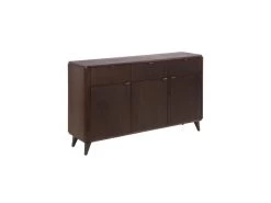 Buffet 3 portes 3 tiroirs en bois de Mindi teinte foncée proposant une dimension otpimisée.