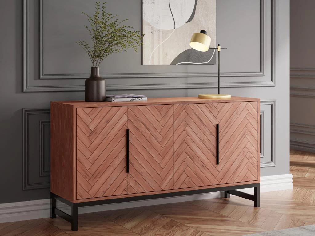 Le buffet VEDILA saura vous charmer pas son sublime bois d’acacia. L’effet chevronné de ce buffet apportera une dimension artistique unique à votre pièce, ajoutant une sensation de mouvement et de dynamisme à l’ensemble de votre décoration. Doté de plusieurs espaces de rangements derrière ses 4 portes, ce buffet vous permettra de garder votre séjour organisé en toute circonstance.