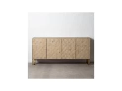 Cette belle enfilade à la proportion parfaite réalisée en bois naturel recyclé mise tout son charme sur les motifs géométriques taillées dans la masse et qui mettent en volume tout le meuble.