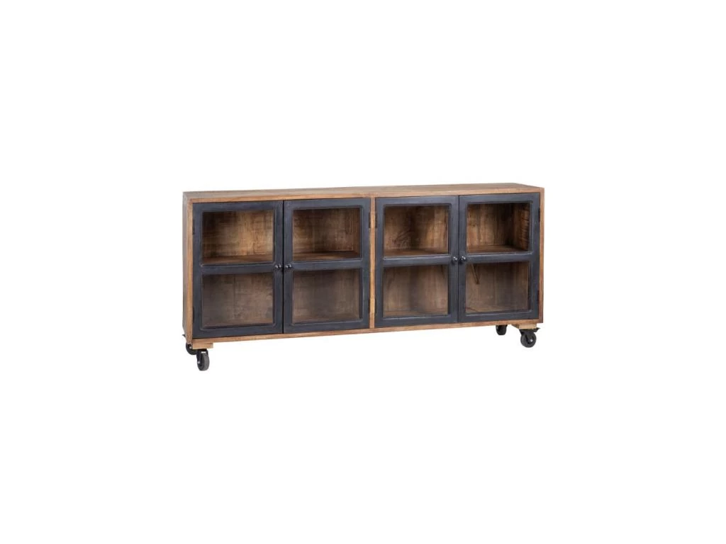 Toutes les caractéristiques du style mobilier Industriel se retrouvent sur ce buffet 4 portes au look exceptionnel.