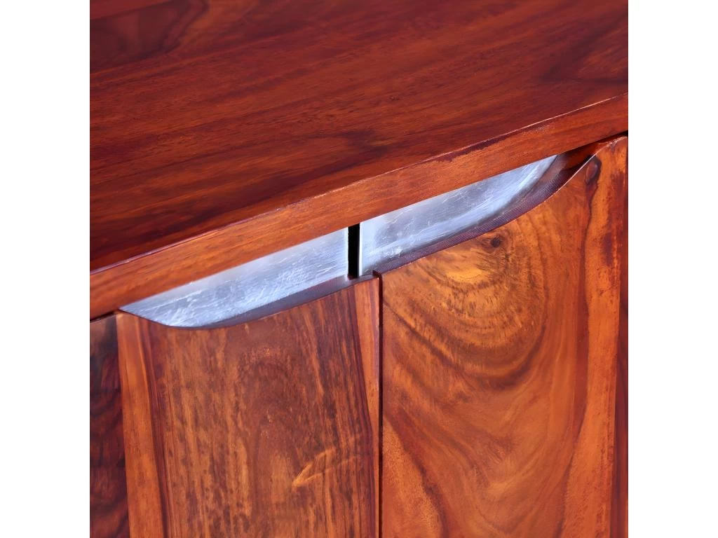 Ce buffet en bois massif de Sesham est élégant et pratique et sera un excellent ajout à votre salon, salle à manger ou couloir. Il peut également être utilisé comme planche basse, armoire latérale ou placard. Le buffet dispose d’un dessus solide pour placer des boissons, des paniers de fruit, des cadres de photo ou des plantes en pot. Les 2 compartiments offrent amplement d’espace pour garder d’autres objets organisés et hors de la vue. Le buffet est fait de bois massif de Sesham et les beaux grains de bois rendent chaque meuble unique et légèrement différent de l’autre. Le Sesham est un bois dur tropical qui est bien connu pour ses grains riches et aussi connu sous le nom de palissandre ou de bois de rose. L’assemblage est facile. Remarque importante : Les couleurs varient d’une pièce à l’autre, rendant chaque pièce unique ; la livraison est aléatoire.