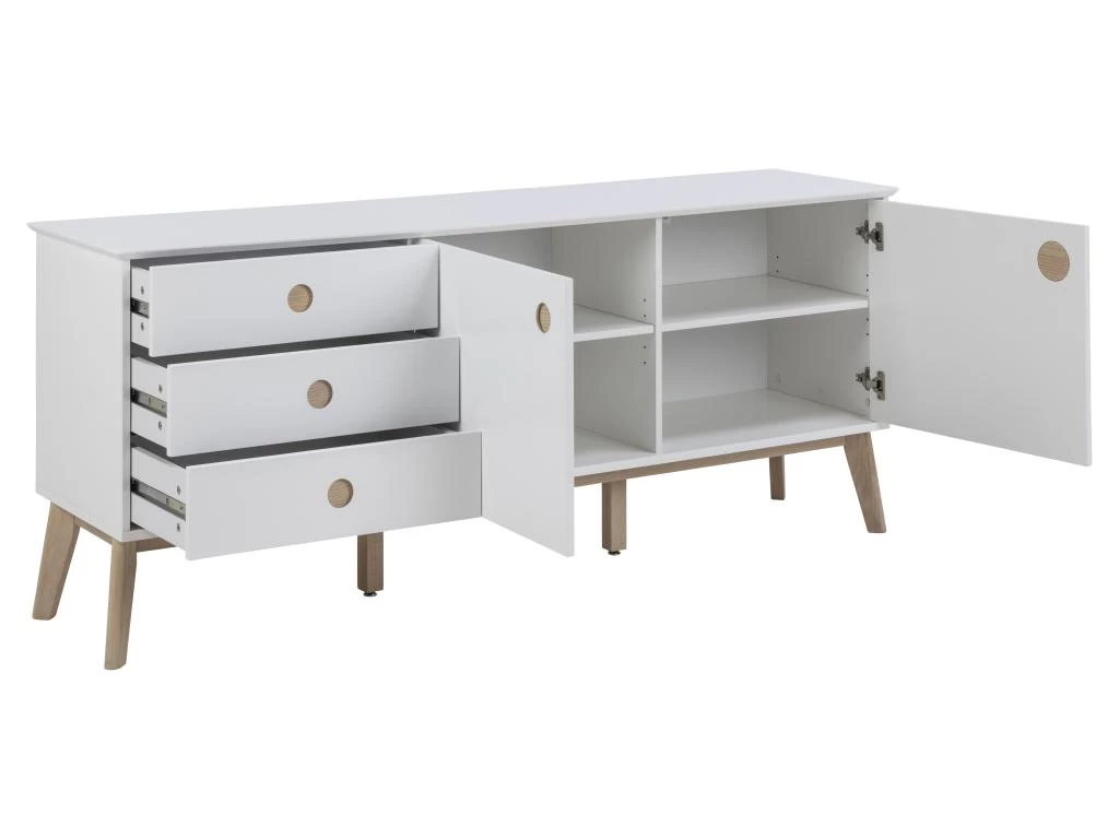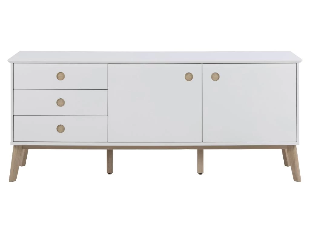 Buffet Carl 2 portes, 3 tiroirs blancs, chêne.Obtenez des meubles de bonne qualité, confortables, conçus dans un design élégant et moderne. Nos meubles sont vendus à des prix vraiment très attractifs et compétitifs. Créez un intérieur qui vous ressemble, en créant un style qui vous est propre grâce à de nouveaux meubles. Combinez vos meubles avec d’autres éléments et accessoires pour créer une athmosphère chic et à la mode. Soyez toujours au goût du jour en matière d’habitat, et suivez les dernières tendances telles que présentées dans les revues et les magazines. Chez nous, vous trouverez des modèles de meubles et de décoration d’intérieur absolument uniques, chics et ultra confortables. Tous nos meubles offrent un design tendance.