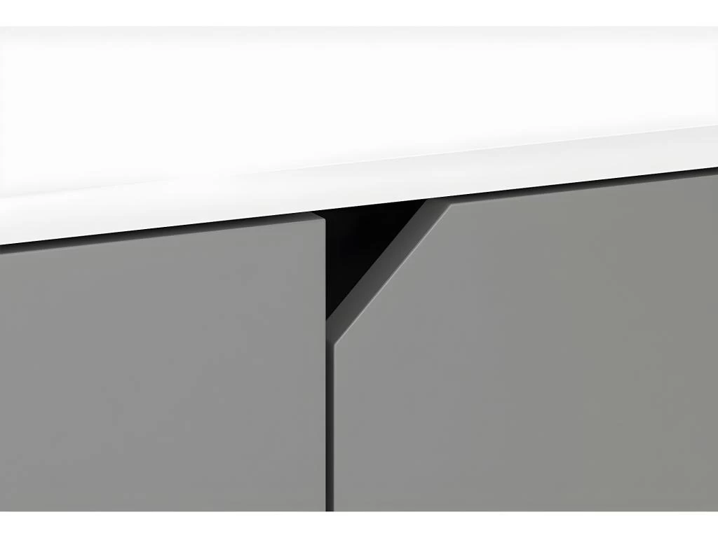 - Buffet équipé de 4 portes asymétriques et 2 tiroirs montés sur coulisses à billes, pour un plus grand confort d’utilisation