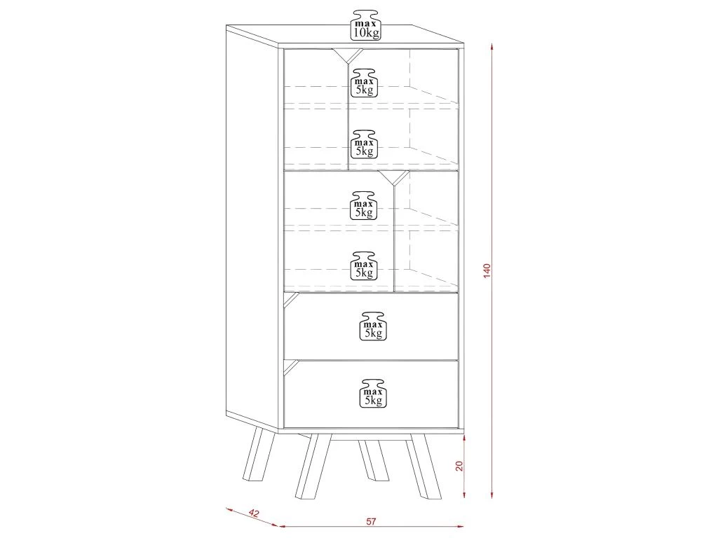- Longueur 57 cm x Largeur 42 cm x Hauteur 140 cm