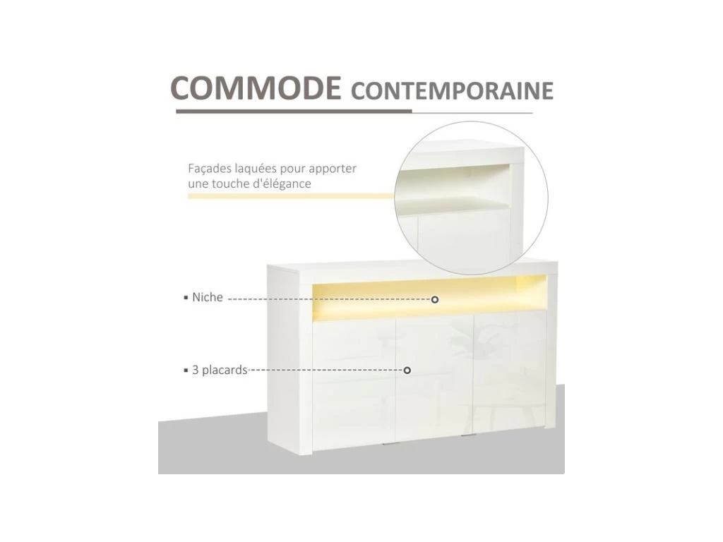 Design et lumineux, le buffet Keith de MYCOCOONING possède un éclairage dans la niche qui peut être géré grâce à une télécommande. Ce meuble dispose de 3 placards avec étagères réglables en hauteur. Il possède un système anti basculement.
