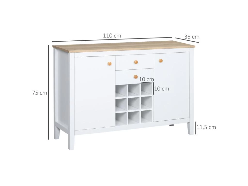 Moderne et élégant, le buffet avec placards Nick de MYCOCOONING séduit pas sa structure épurée et ses couleurs naturelles claires. Multi-rangements, il dispose de 2 placards avec étagère réglable en hauteur sur 3 niveaux, de 2 tiroirs et de porte-bouteilles. Le grand plateau supérieur en bois permet d’y placer des objets de décoration pour le personnaliser. Un dispositif anti basculement à l’arrière empêche le buffet de bouger même lorsqu’il est empli de vaisselle.