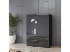 Buffet Haut Collection ZANTE. LED Intégrées. Coloris Noir Brillant Pailleté.