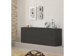 Buffet SABONI – 2 Portes, 2 Tiroirs Et 1 Niche – Noyer Et Anthracite