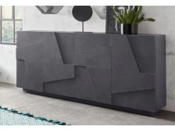 Buffet MAESTRO – DĂ©cor BĂ©ton Et Blanc LaquĂ© Brillant – 4 Portes – L 184 X P 42 X H 93 Cm