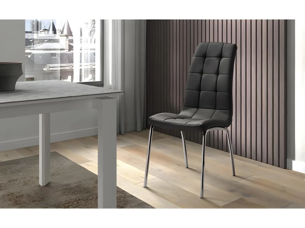 Chaise MERIL PU Noir, Dimensions: H96 X L42 X P55 Cm, Idéal Pour Une Salle A Mangé Tape A L’œil