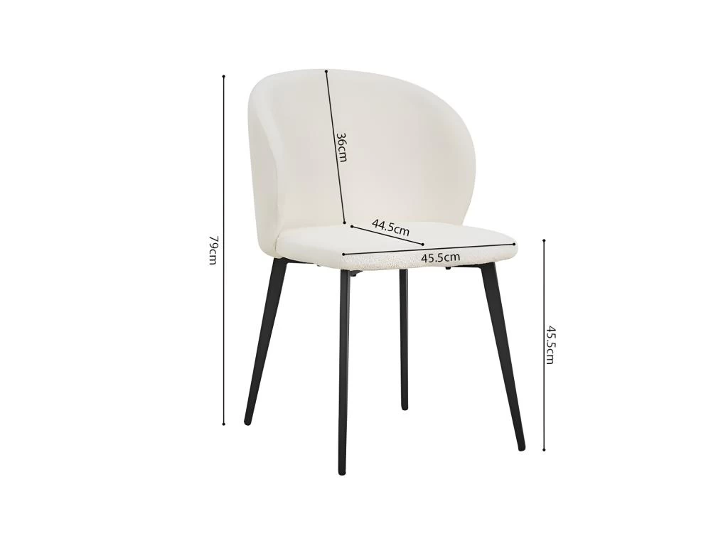 Découvrez la chaise ‘TOLO’ en bouclé blanc, un choix polyvalent et moderne pour votre espace. Avec ses dimensions de H80 x L51 x P55 cm, cette chaise offre une assise confortable et ergonomique.