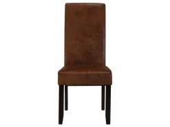 Lot De 2 Chaises SANTOS – Microfibre Aspect Cuir Vieilli – Pieds Bois Foncé