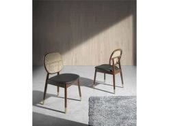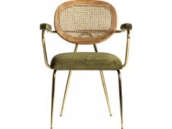 Chaise De Salle à Manger Bois Massif Assise Rembourrée Simili Dossier Rotin Pieds Doré