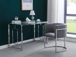 Lot De 6 Chaises Avec Accoudoirs – Velours Et Acier Inoxydable – Gris Et Chromé – PERIA De Pascal MORABITO