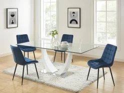 Lot De 6 Chaises Matelassées – Velours Et Métal Noir – Bleu Nuit – OLLUA