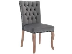 Lot De 4 Chaises Capitonné En Velours – Cadre En Bois Massif – Gris