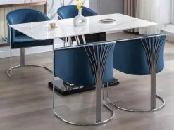 Chaise Avec Accoudoirs En Velours Et Métal – Bleu Et Chromé – JOSETHE De Pascal MORABITO