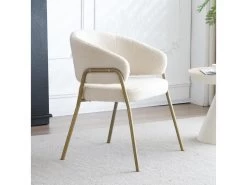 Lot De 2 Chaises – Tissu En Sherpa – Pieds Dorés – Beige