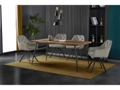 GORDON – Fauteuil De Table En Velours Coloris Lin, Pieds Métal Noir (x2)
