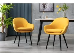 CANCUN – Chaise Scandinave Tissu Curry Pieds Métal Noir(x2)