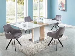 Lot De 2 Chaises Avec Accoudoirs – Velours Et Métal Effet Bois – Gris – ELEANA