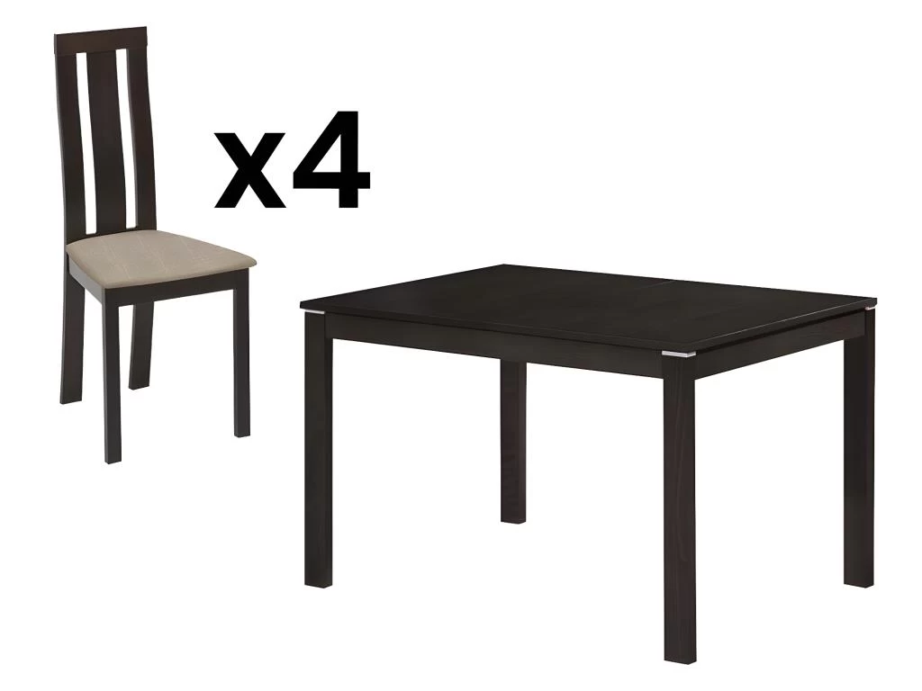 Cet ensemble contient 1 table à manger DOMINGO II et 4 chaises DOMINGO – Coloris Wengé