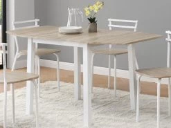 L’ensemble de salle à manger SERANI vous offre une table au joli plateau, soutenu par des pieds en bois de hêtre solides. Elle accueillera 6 invités pour de longs repas conviviaux. Les chaises s’y accorderont parfaitement avec grâce à leur style scandinave.