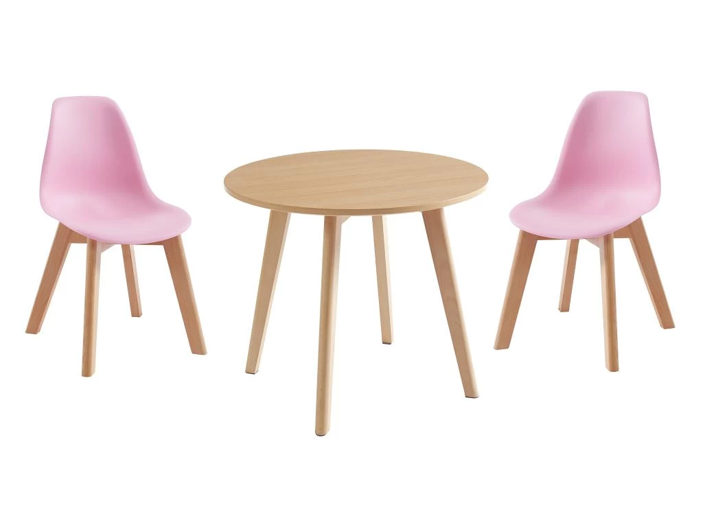 La table LOULOUNE et les chaises LILINOU pour enfant possèdent des pieds robustes en bois de hêtre. Cet ensemble reprend le style scandinave avec deux chaises coques et un coloris naturel. La couleur des assises apportera du dynamisme dans la chambre de votre enfant.