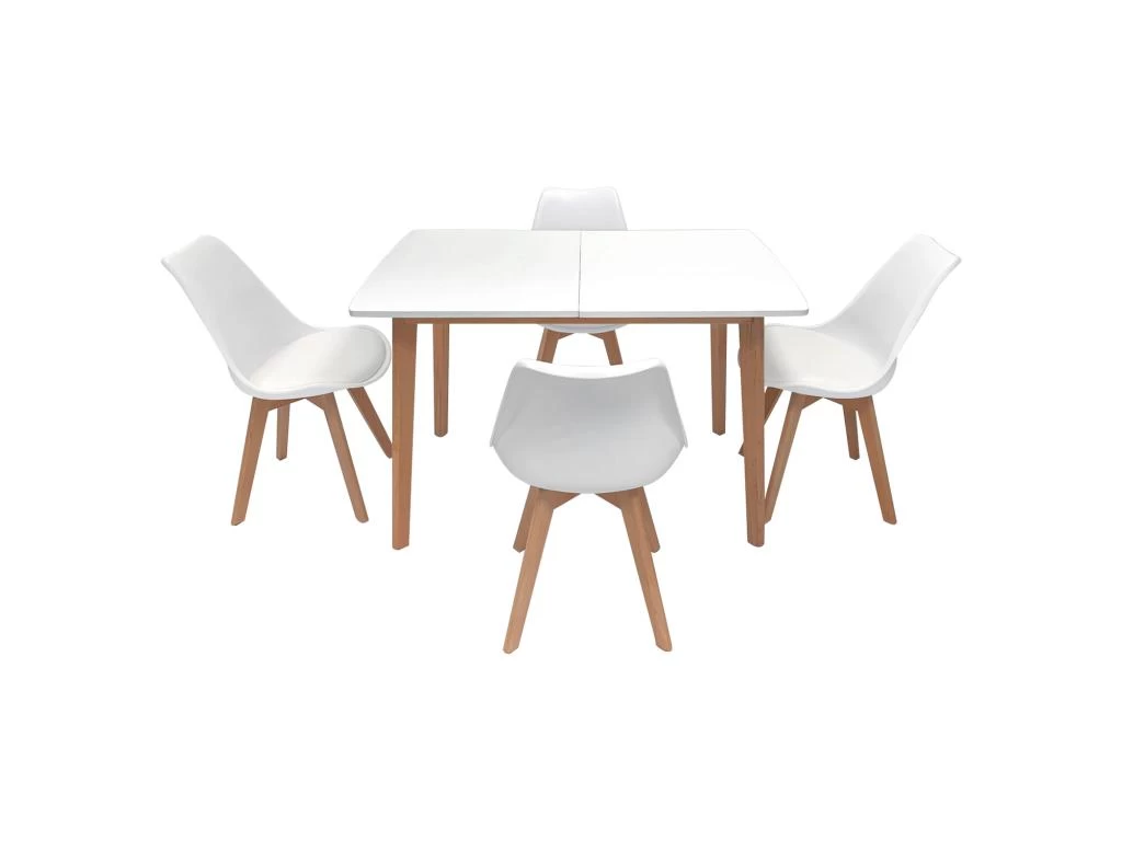 L’ensemble scandinave NORA est composé d’une table extensible et de ses 4 chaises. Avec sa rallonge papillon située sous le plateau, vous pourrez installer jusqu’à 6 personnes autour de la table. Vos invités seront confortablement installés car les chaises sont ergonomiques et mœlleuses. Les matières qui composent chacun des éléments de cet ensemble sont résistantes et vous permettront de le garder le plus longtemps possible. Enfin, avec son design et ses couleurs épurés, vous pourrez installer l’ensemble NORA où vous voulez.