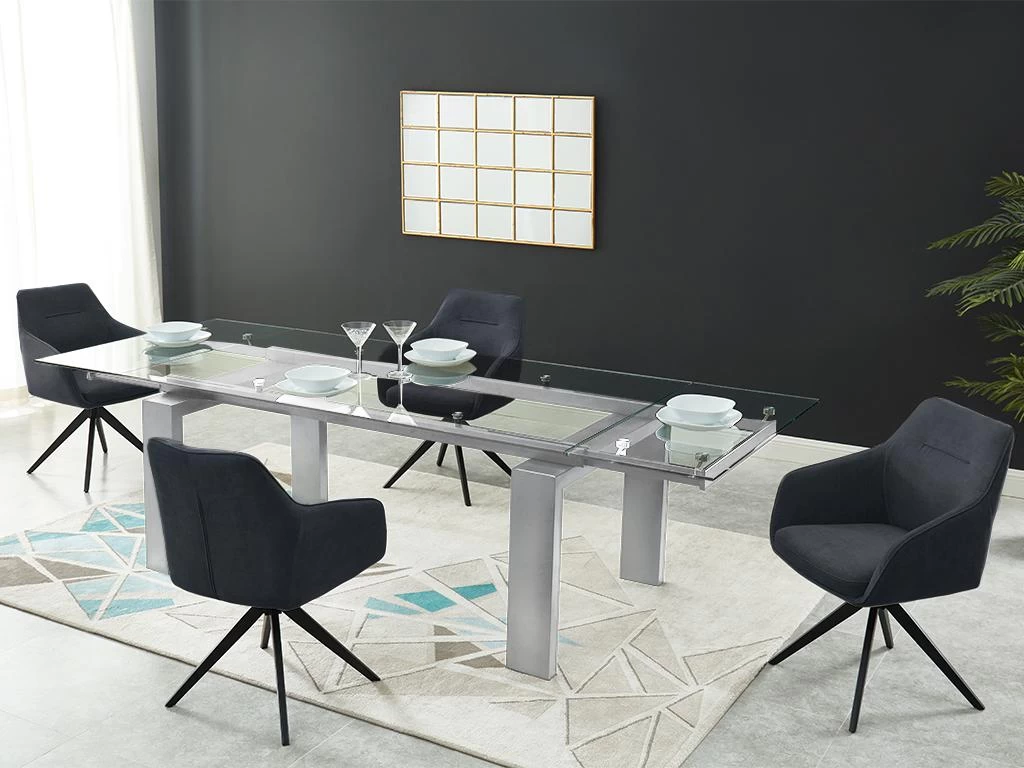 Toute en transparence, la table LUBANA joue sur les matières résolument contemporaines pour illuminer votre pièce. Véritable bijou de technologie, elle pourra accueillir jusqu’à 10 convives grâce à sa fonction extensible !