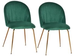 Lot De 2 Chaises Style Art-déco Dossier Strié Arrondi Piètement Métal Doré Incliné Effilé Velours Vert Sapin