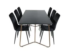 PippiCO Ensemble Table, Table Noir Et 6 Windu Lyx Chaises Velours Noir.