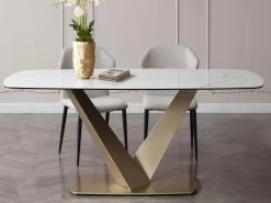 Table à Manger 6 Couverts En Céramique Et Métal – Effet Marbre Blanc Et Doré – PORELIMA De PASCAL MORABITO