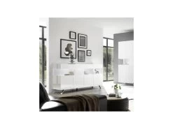 Buffet à LED ODYSSEE Laqué Blanc Brillant 3 Portes 170cm