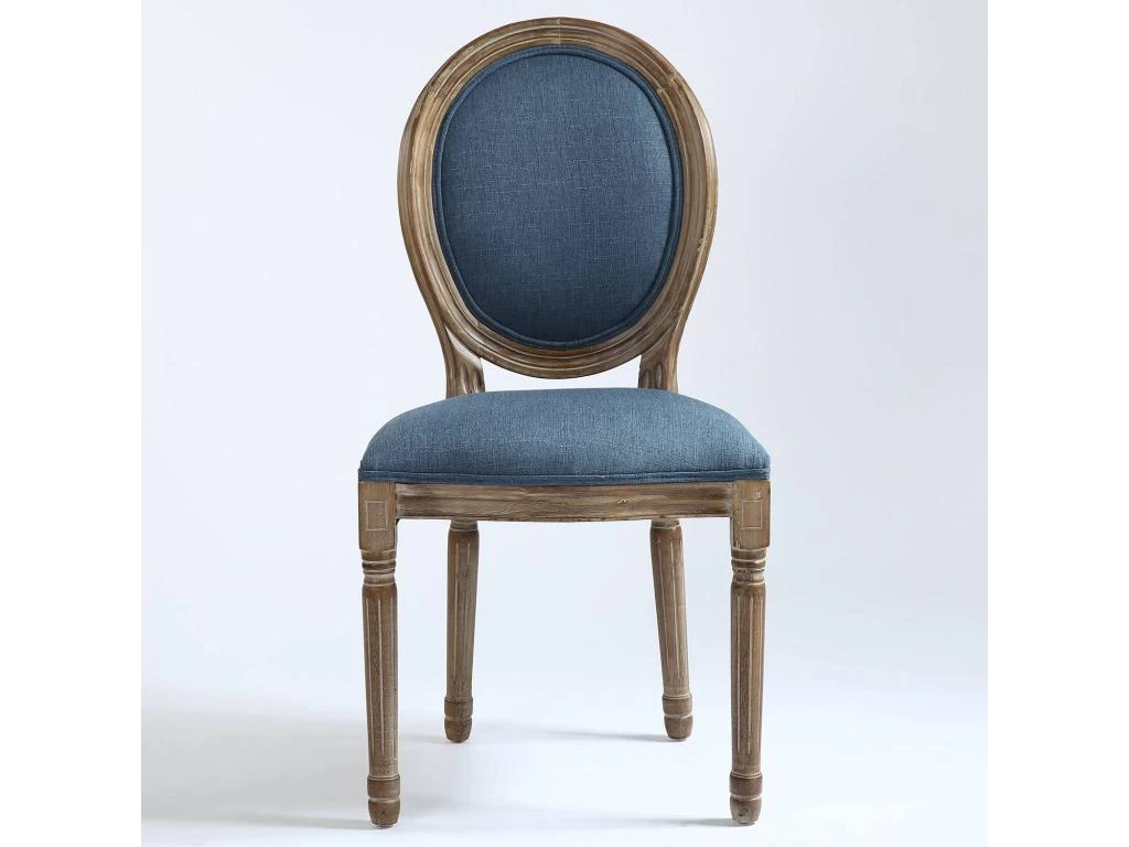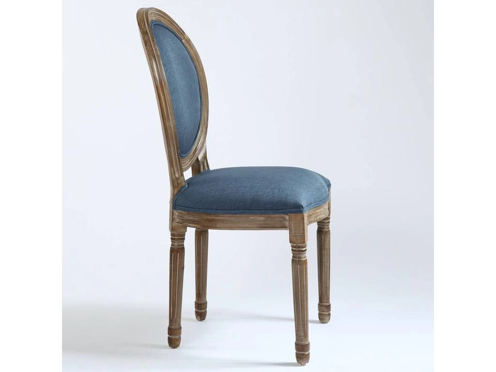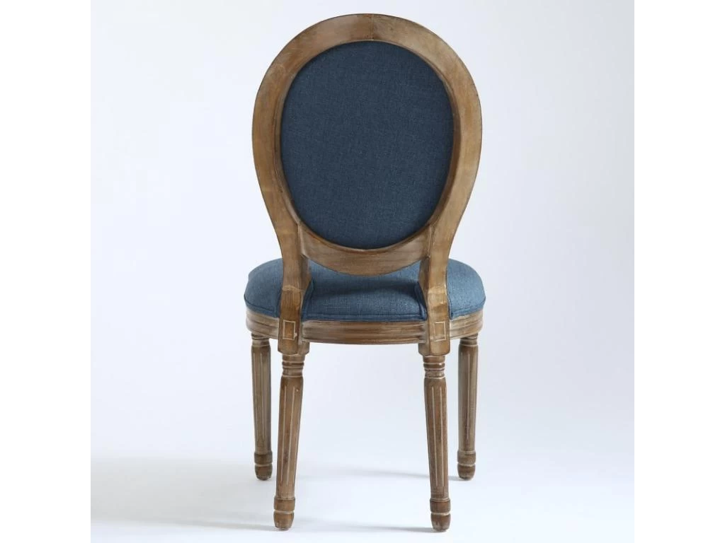 La chaise LOUIS XVI est une chaise de style médaillon de qualité supérieure, avec structure et pieds en bois légèrement cérusé. Son assise et son dossier revêtus d’un tissu résistant sont rembourrés et très confortables. Lot de deux chaises au design classique extra-chic, idéales dans un salon ou dans une salle à manger moderne.Catégories Associées :Chaise bleue, Chaise bois