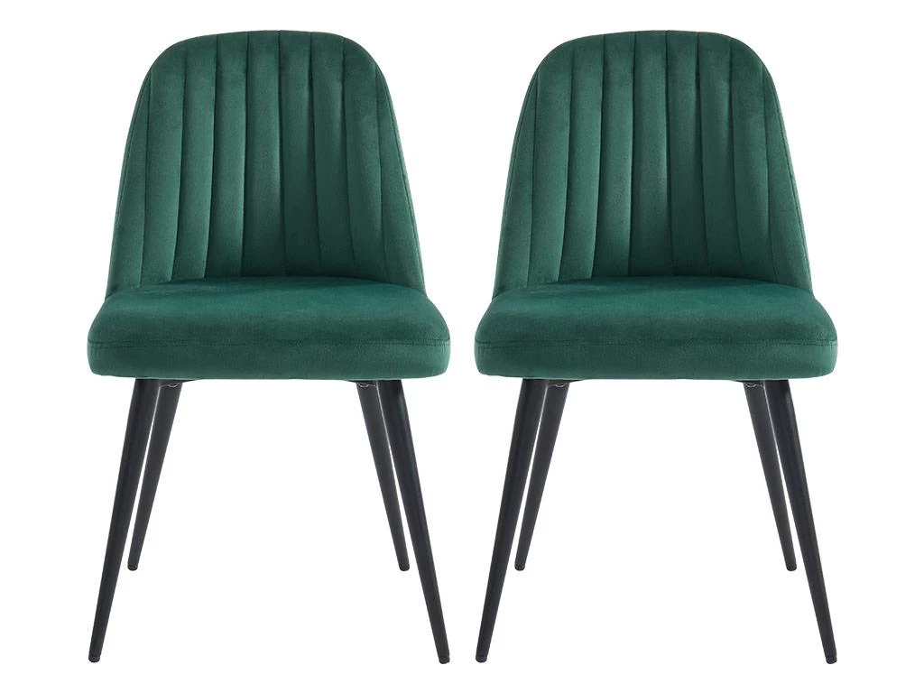 Lot De 2 Chaises ELEANA – Velours & Métal Noir – Vert