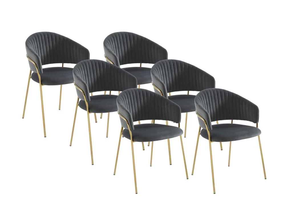 La chaise MADOLIA deviendra un élément central de votre séjour grâce sa forme enveloppante et la luminosité de son piètement doré. En deux partie, elle se compose d’une assise rembourrée ainsi qu’un dossier circulaire matelassé pour un confort exquis.