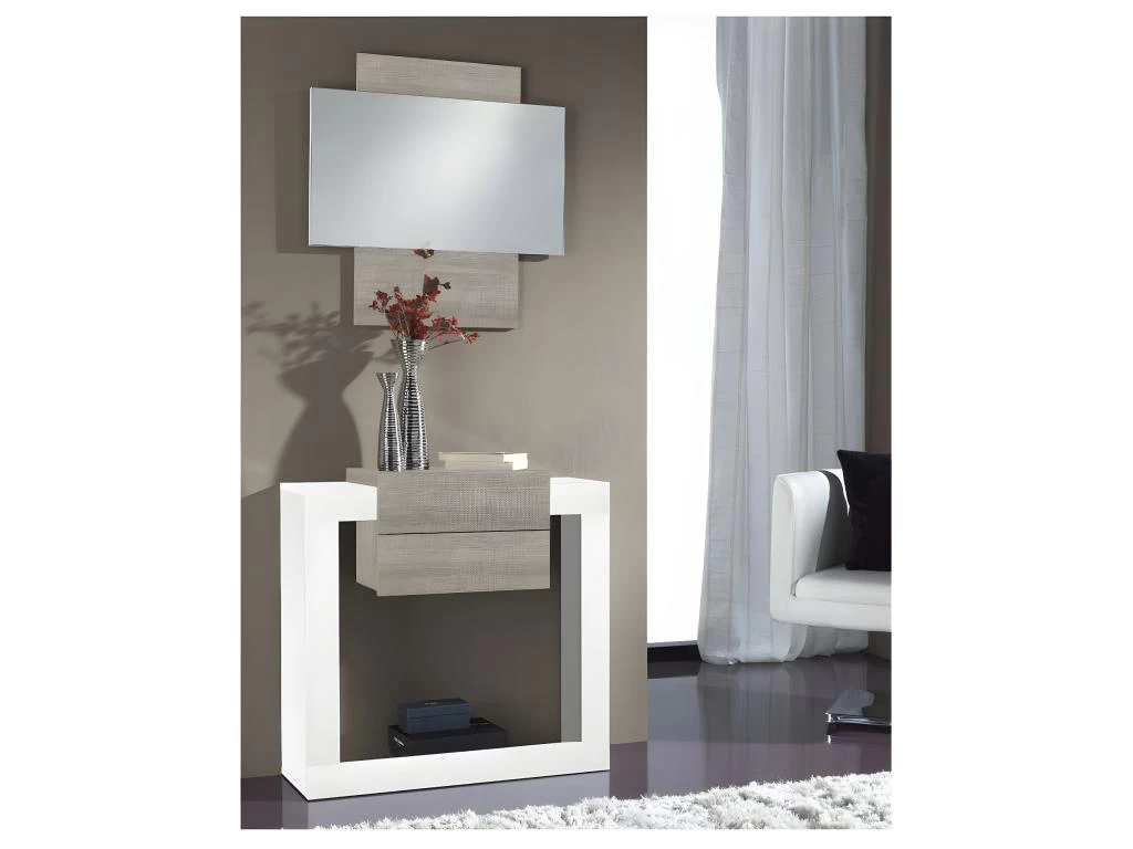 Meuble D’entrée Bois Blanc/Chêne Clair + Miroir – NEEMA
