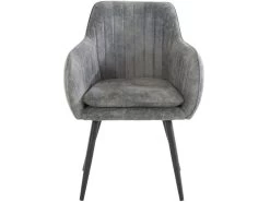 Lot De 2 Chaises Avec Accoudoirs – Velours Et MĂ©tal – Gris – KELINE