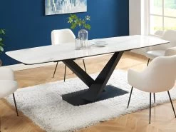 Table Ă  Manger Extensible LIBSY – 6 Ă  8 Couverts – CĂ©ramique Et MĂ©tal – Blanc