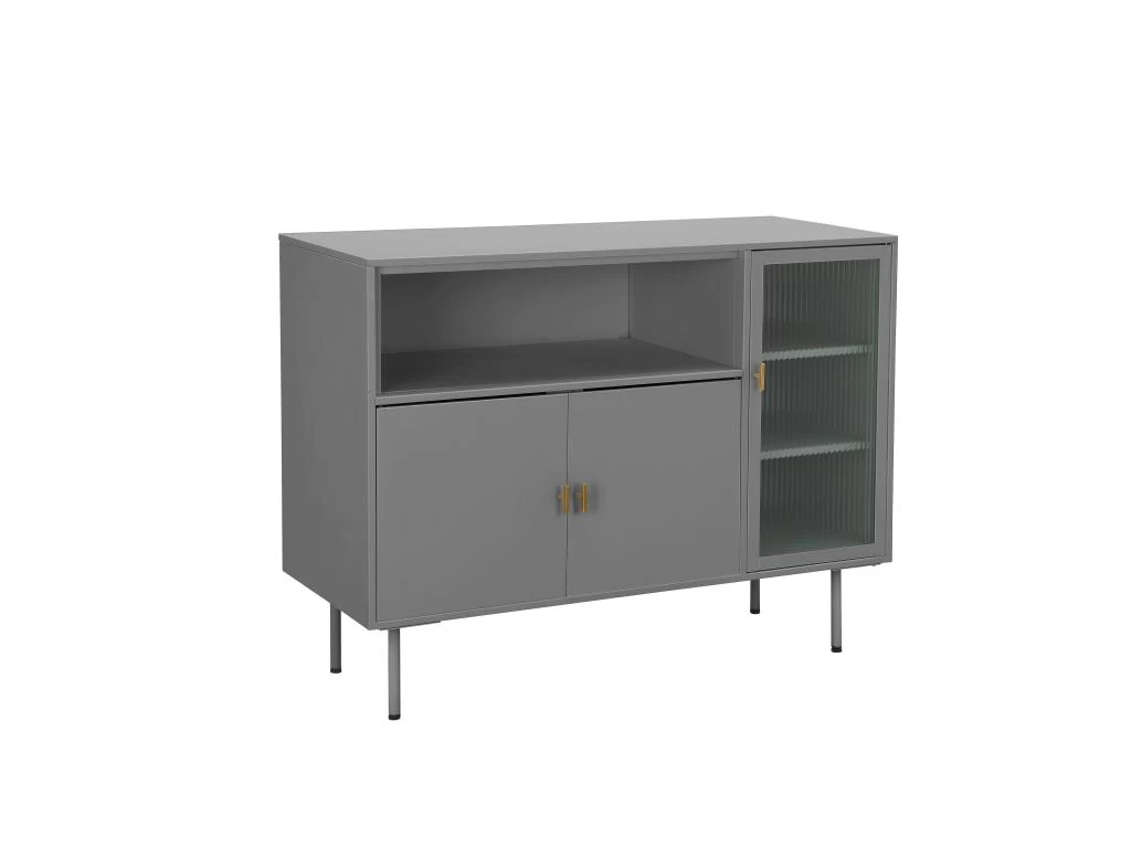Que ce soit dans le salon, la chambre ou le couloir, avec ce buffet à trois portes, vous créez plus d’espace de rangement pour votre écran plat ou de beaux éléments décoratifs. Le buffet moderne est en métal et est donc robuste et durable. La surface laquée est non seulement esthétique, mais elle est également destinée à empêcher l’humidité de pénétrer. Les poignées métalliques sont stables et ne s’usent donc pas aussi rapidement. De style glamour, ce meuble transforme chaque pièce en une petite scène. L’utilisation de reflets brillants en or ou en argent assure également une mise à jour glamour. Une porte avec façade en verre ajoute une touche particulière à cette armoire.