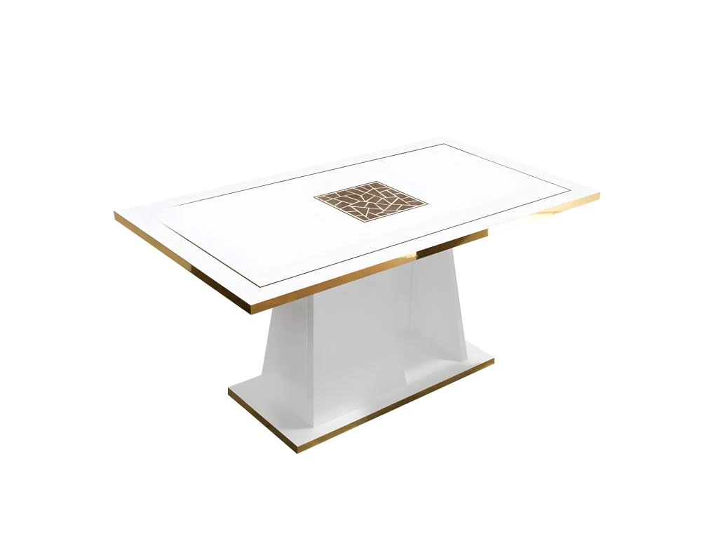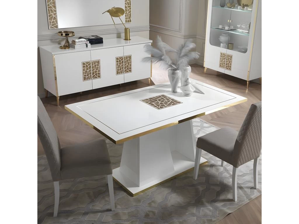 Table Repas 160 Rectangle Laquée Blanc et Or Décor Sérigraphié de la gamme Safary.