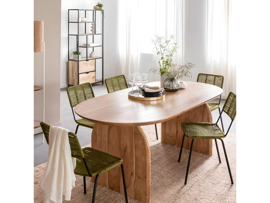 Table à manger Paulo en bois d’acacia : moderne, élégante et durable. Parfaite pour des repas spéciaux, avec son grand plateau ovale de 200 cm et une hauteur de 76 cm. Faites-la vôtre dès aujourd’hui ! Épaisseur du plateau : 4 cm.